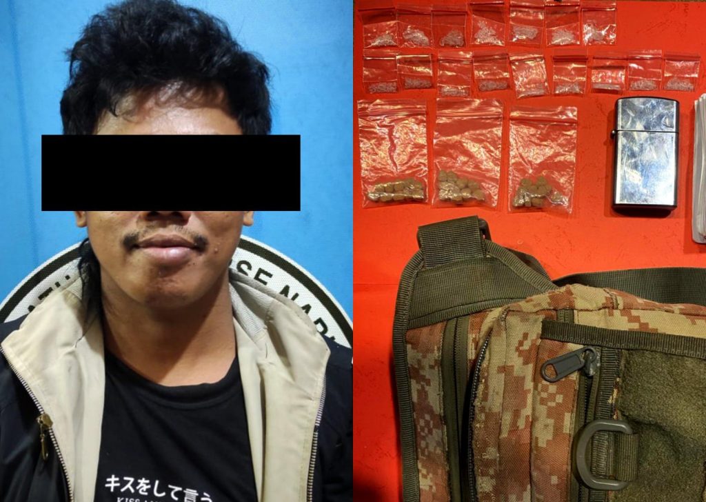 SO Als Entik ditangkap saat berada di sebuah rumah, diwilayah Bangun Rejo, Lampung Tengah, berikut barang bukti berupa 16 bungkus plastik klip bening berisi kristal warna putih diduga Narkotika jenis sabu, 3 bungkus plastik klip bening berisi tablet warna coklat diduga ekstasi, 1 unit timbangan digital dan 1 buah tas warna hijau juga turut diamankan petugas.