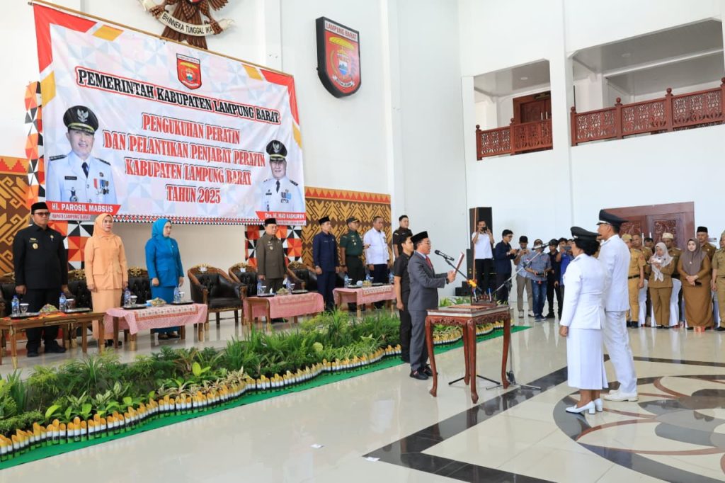 Lampung Barat – Bupati Lampung Barat Parosil Mabsus secara resmi melantik 60 peratin (Kepala Desa) di wilayah kabupaten setempat, Senin (25/08/2025).