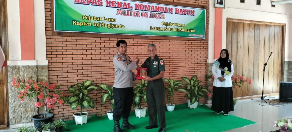 Sambutan perkenalan dari pejabat Danramil baru Letnan Satu Inf Sumarno menyampaikan perkenalan dirinya dan mengucapkan banyak terimakasih atas sambutan yang sangat luar biasa di acara lepas kenal di pendopo kecamatan jiken. Semoga di tempat tugas yang baru ini kami dapat meneruskan apa yang telah di jalankan oleh bapak Danramil lama Kapten Inf Sugiyanto. Tentunya kami juga mohon kerjasamanya kedepan untuk bisa diberi saran masukan dari bapak camat, kapolsek, kepala desa dan tokoh masyarakat agar kami dapat menjalankan tugas dengan sebaik baiknya.
