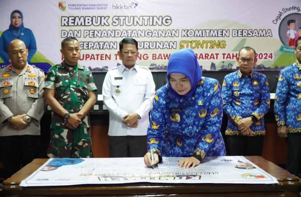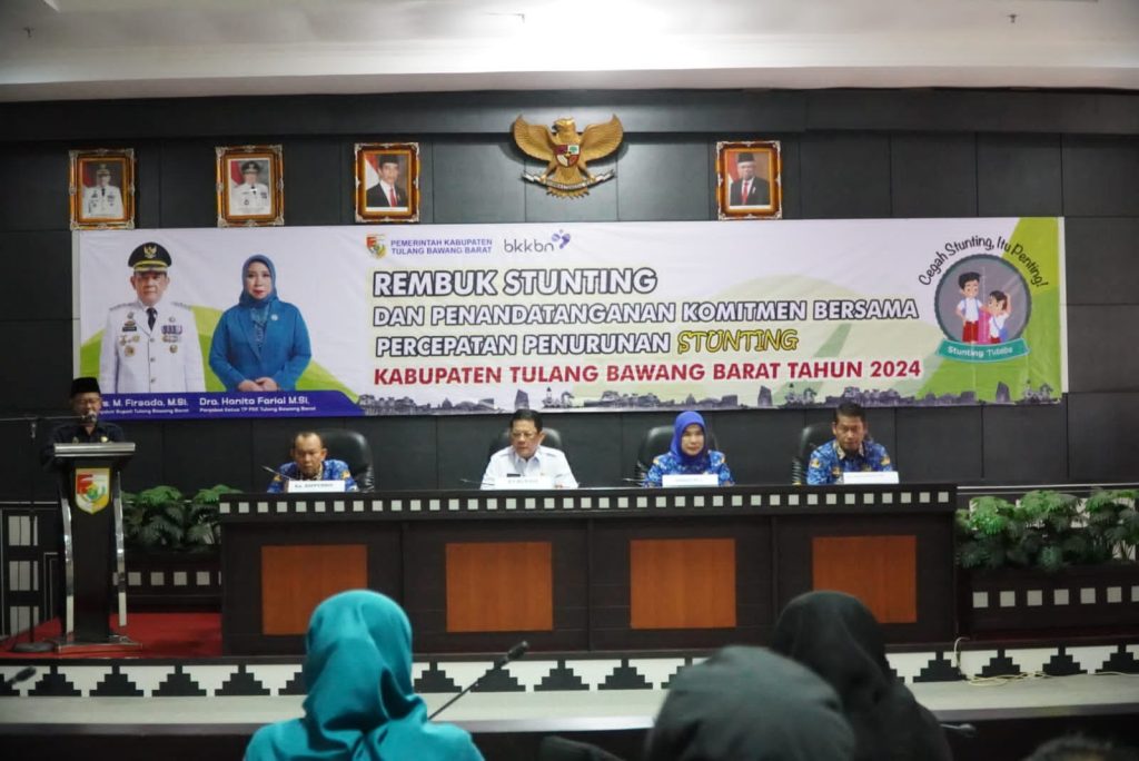 Hal itu disampaikannya, saat membuka rapat rembuk stunting dan penandatanganan komitmen bersama percepatan penurunan stunting Kabupaten Tubaba, yang berlangsung di Ruang Rapat Bupati setempat. Kamis (02/05/2024).