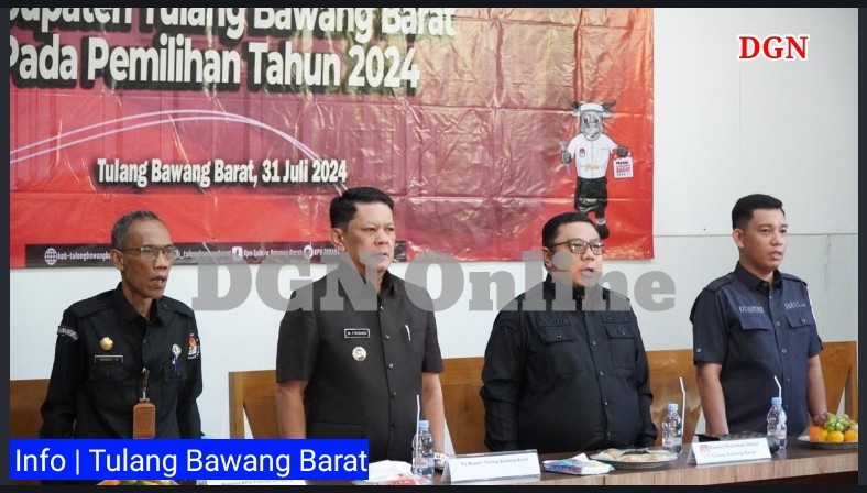 TUBABA – DGNews | Penjabat Bupati Kabupaten Tulang Bawang Barat Drs. M. Firsada, M.Si., Hadiri Rapat Koordinasi dan Sosialisasi Tahapan Pencalonan Serta Penyusunan Visi Misi dan Program Kerja Pasangan Calon Bupati dan Wakil Bupati Kabupaten Tubaba, berlangsung di Wisma Asri Tirta Makmur. Rabu (30/07/24).