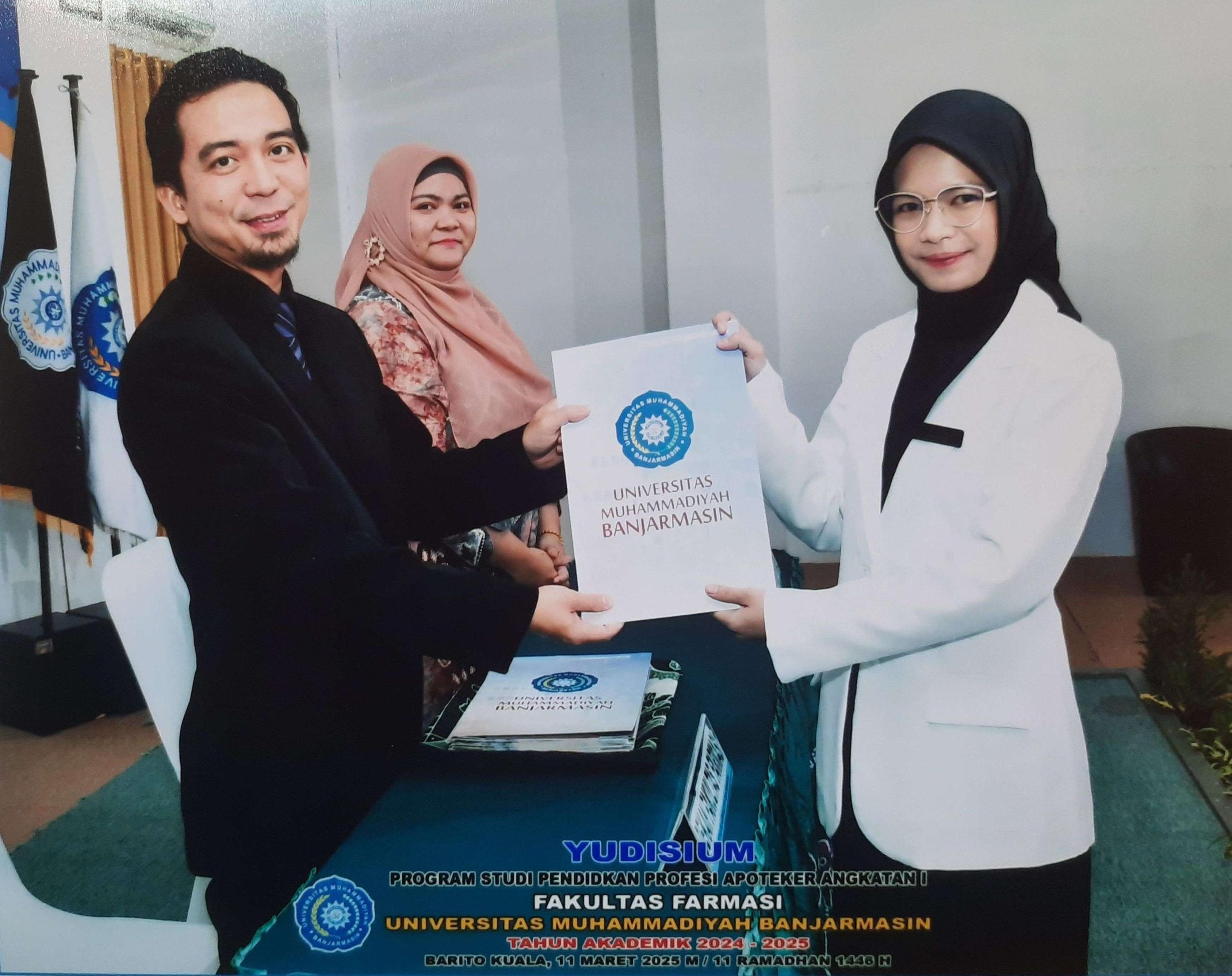 Bertempat di Aula Hj. Ulfah Lantai 4 Gedung Universitas Muhammadiyah Banjarmasin, Acara Yudisium Profesi Apoteker Angakatan I yang dihadiri oleh Dekan Fakultas Farmasi, Ketua Program Studi Profesi Apoteker, segenap Civitas Akademika serta para mahasiswa lulusan Profesi Apoteker yang melaksanakan proses Yudisium.