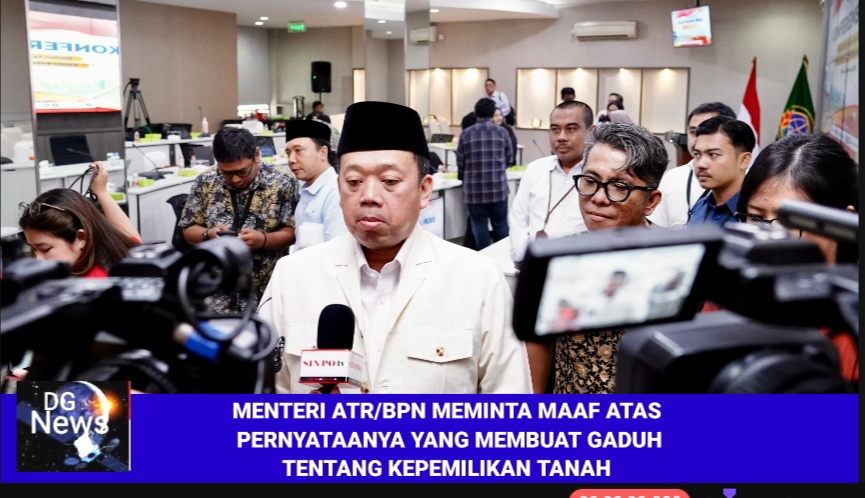 “Saya atas nama Menteri ATR/Kepala BPN, Nusron Wahid, menyampaikan permohonan maaf kepada seluruh masyarakat Indonesia, kepada publik, kepada netizen atas pernyataan saya beberapa waktu yang lalu (terkait kepemilikan tanah) yang viral dan menimbulkan polemik di masyarakat dan memicu kesalahpahaman,” ucap Menteri Nusron.