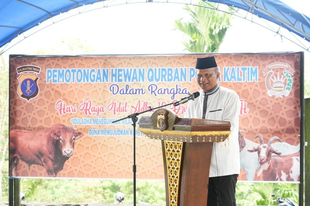 Hewan kurban di Polda Kaltim tahun ini berasal dari Kapolda, Wakapolda, PJU Polda Kaltim dan staf/anggota serta Kasatwil Jajaran Polda Kaltim. Selain itu, ada pula dari Pj. Walikota.