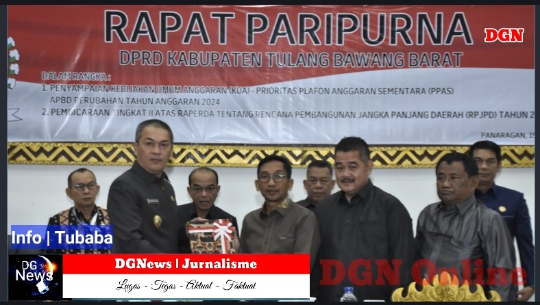 TUBABA | Sekretaris Daerah (Sekda) Kabupaten Tulang Bawang Barat (Tubaba) Ir. Novriwan Jaya, S.P., Menghadiri Rapat Paripurna Penyampaian KUA-PPAS APBD-P Tahun Anggaran 2024 dan Pembicaraan Tingkat II atas Raperda RPJPD Tahun 2025-2045. Di Ruang Paripurna DPRD setempat, Senin (15/07/2024)