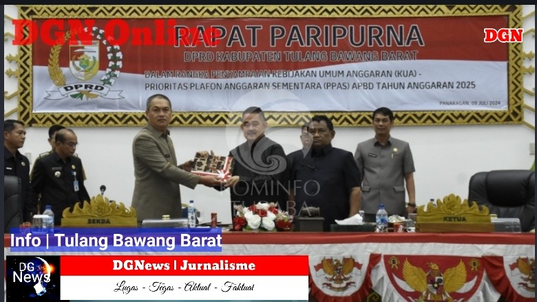 DGNews | Sekretaris Daerah (Sekda) Kabupaten Tulang Bawang Barat (Tubaba) Ir. Novriwan Jaya, S.P., menyampaikan rancangan Kebijakan Umum Anggaran serta Prioritas Plafon Anggaran Sementara (KUA PPAS) APBD Tahun Anggaran (TA) 2025.