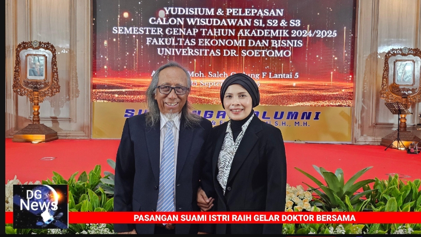 Surabaya, DGNews – Mereka bukan hanya pasangan suami istri, tetapi juga partner dalam perjalanan akademik. Putri Septi Naulina Hasibuan dan Rinto Harno baru saja dikukuhkan sebagai doktor dari Program Pascasarjana Manajemen Fakultas Ekonomi dan Bisnis Universitas Dr. Soetomo (Unitomo) Surabaya, Sabtu (27/9/2025).