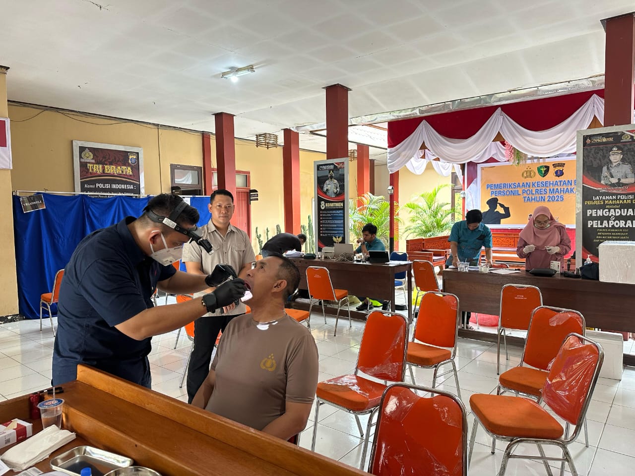 Mahakam Ulu – Dalam upaya menjaga kondisi fisik dan kesehatan personel, Polres Mahakam Ulu menggelar kegiatan Pemeriksaan Kesehatan Berkala (Rikkesla) Tahun Anggaran 2025, yang berlangsung di Ruang Lobi Polres Mahakam Ulu, Jumat (2/5/2025).