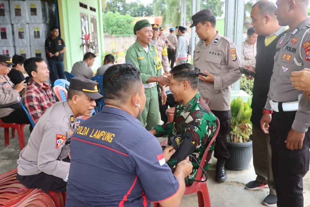 LAMTENG| Guna mencegah adanya petugas penyelenggara Pemilu 2024, baik Panitia Pemilihan Kecamatan (PPK) beserta perangkatnya maupun petugas pengamanan dari TNI,Polri, Satpol PP dan Linmas yang kelelahan, Si Dokkes Polres Lampung Tengah hadir untuk memberikan layanan Kesehatan. Minggu (18/2/24)