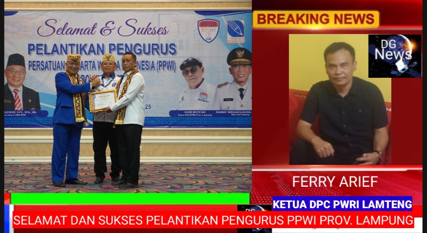 DGNews — Bandar Lampung |[DPC PWRI Lampung Tengah ucapkan selamat kepada rekan rekan kepengurusan Persatuan Pewarta Warga Indonesia (PPWI) Provinsi Lampung yang telah dilantik di Balai Keratun lt.3 Kantor Gubernur Lampung, Rabu (16/07/2025).