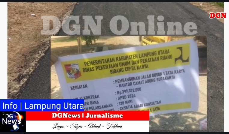 Lampung Utara – DGNews – Pasalnya pekerjaan yang dikerjakan oleh CV. Pawaka Jaya dengan menggunakan anggaran APBD tahun 2024 senilai Rp.399.372.000 dengan volume 370 meter. Pekerjaan dengan rincian lapen sepanjang 120 meter,yang dikerjakan dalam waktu 120 hari kalender tersebut, diduga tidak sesuai spesifikasi yang ditentukan oleh dinas PU kabupaten Lampung Utara Rabu(26/06/2024).