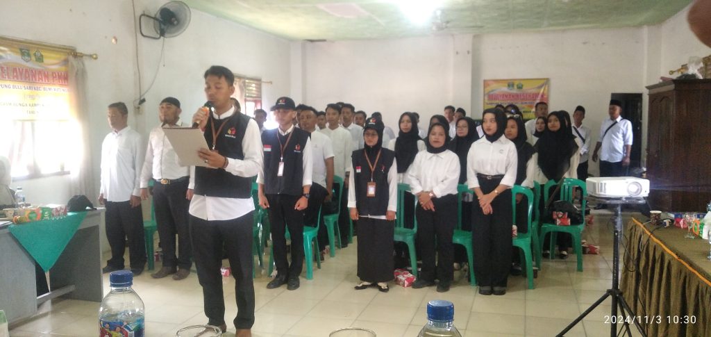 Lampung Tengah | Ketua Panwascam Bumiratu Nuban melantik Pengawas Tempat Pungutan Suara (PTPS) sebanyak 50 peserta dari 10 kampung Se Kecamatan Bumiratu Nuban yang dihadiri oleh Komisioner Panwascam Bumiratu, Forkompincam, Kepala Kampung, PKD, PPK Bumiratu Nuban, media, minggu (03/11/2024).