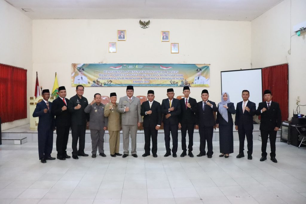 Lampung Tengah | Bupati Lampung Tengah Musa Ahmad melantik dan mengambil sumpah jabatan Pejabat Pimpinan Tinggi Pratama dan Administrator di Lingkungan Pemkab Lampung Tengah pada hari Kamis 21 Maret 2024 bertempat di Aula BKPSDM. Dalam kesempatan tersebut hadir Pj. Sekda, Asisten Adminstrasi Umum, Inspektur, Kepala BKPSDM serta tamu undangan.