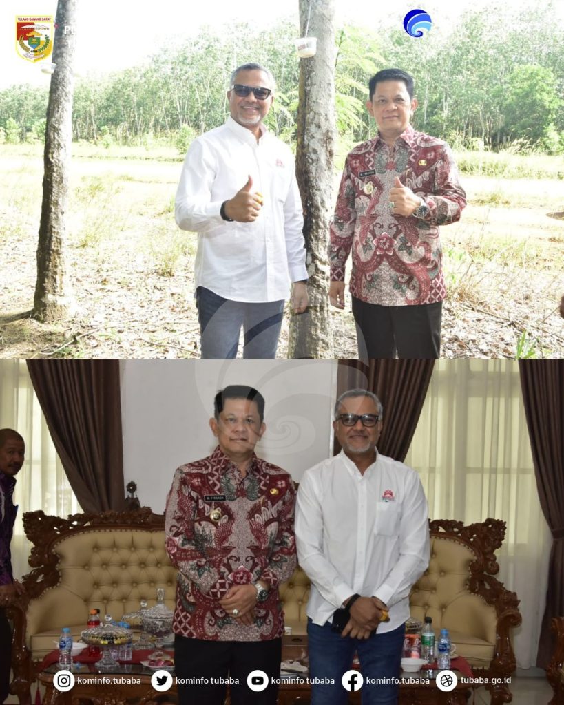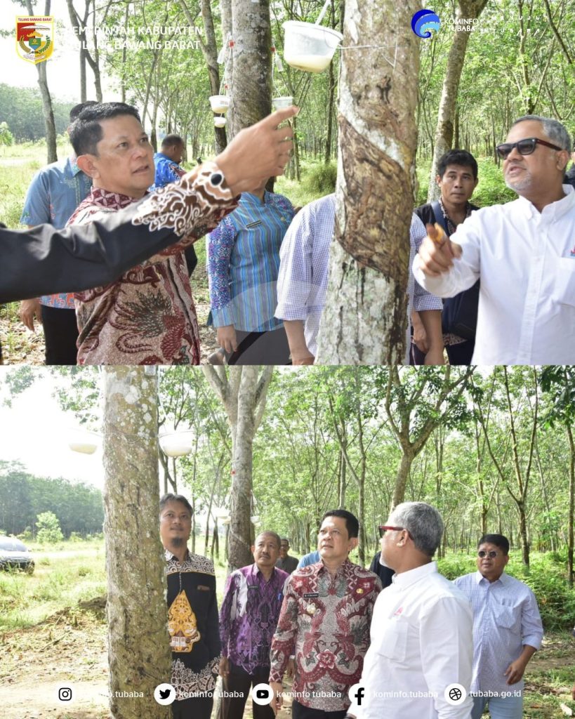 Penjabat (Pj) Bupati Tubaba, Drs.M. Firsada, M.Si melihat langsung hasil uji coba kerja sama Muhammadiyah Tubaba dan Mercu Malaysia dalam penerapan sistem sadap baru berupa Micro Typing Sistem hasil penemuan dari Mercu Biotech Malaysia di perkebunan Opal Nenemo Tubaba.