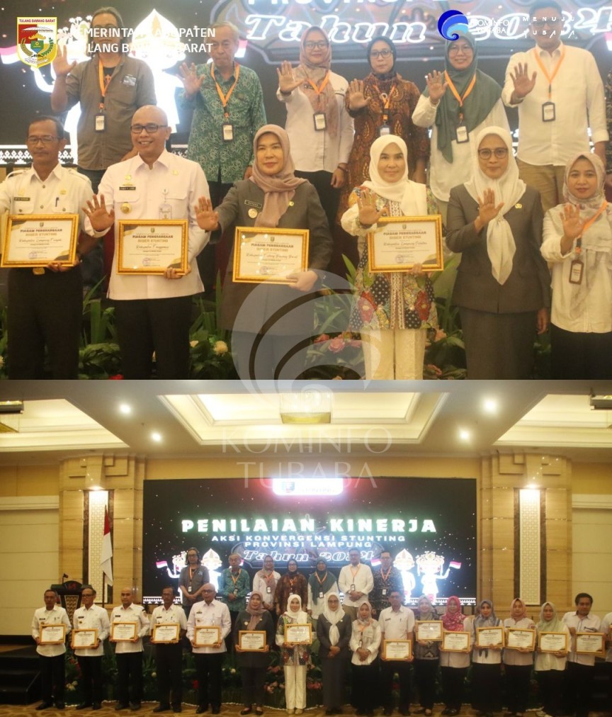 TUBABA | Pemerintah Kabupaten (Pemkab) Tulangbawang Barat (Tubaba) meraih penghargaan Siger Stunting (Sinergitas Intervensi Gerakan Penurunan Stunting) Kategori Utama dalam Penilaian Kerja Pelaksanaan Aksi Konvergensi Penurunan Stunting di Provinsi Lampung Tahun 2024.