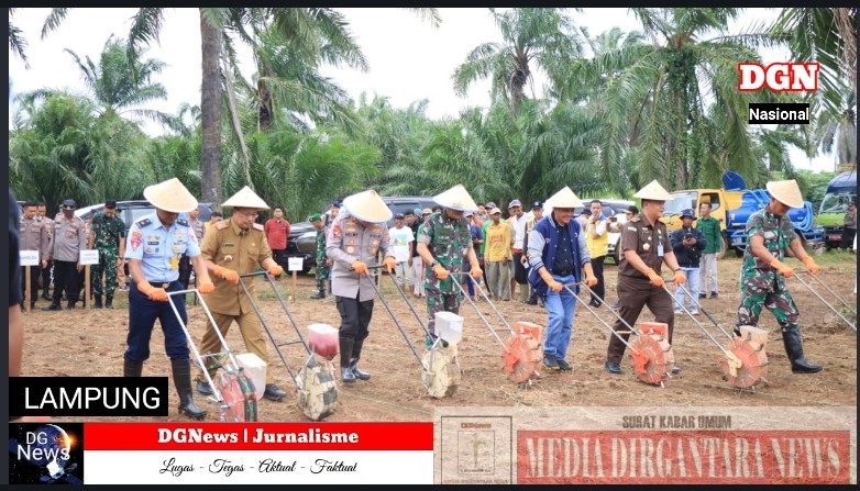 LAMPUNG | Kepolisian Daerah (Polda) Lampung bersama jajaran mengikuti video telekonferensi yang dipimpin oleh Kapolri Jenderal Listyo Sigit Prabowo dan Menteri Pertanian RI Andi Amran Sulaiman dari Cibende, Subang, Jawa Barat, dalam rangka penanaman jagung serentak 1 juta hektar, Selasa (21/01/2025).