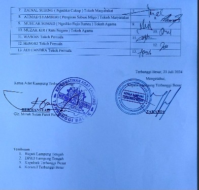 Pernyataan sikap tersebut menjadi alasan kuat oleh Tokoh adat dan tokoh masyarakat Kampung terbanggi besar Lampung Tengah.