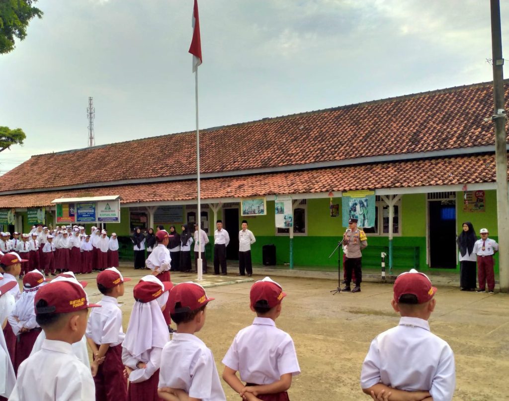Selain menjadi pembina upacara, Bripka Suyatnono, S.H juga turut memberikan pembinaan dan penyuluhan (Binluh) tentang kenakalan remaja kepada siswa/i Madarasah Iftidaiyah.