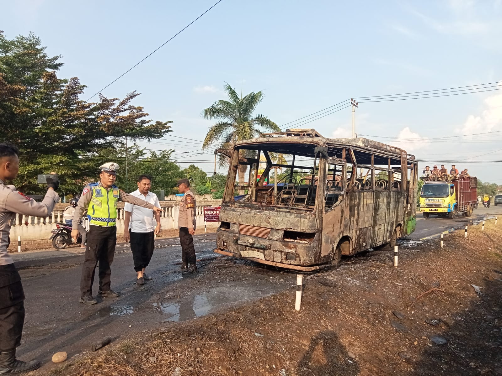 Tulang bawang barat | Polisi Polres Tulang Bawang Barat mengungkap penyebab bus Antar Kota Dalam Provinsi (AKDP) yang terbakar di Jalan lintas Tiyuh Murni Jaya Kec.Tumijajar Kabupaten Tulang Bawang Barat, Rabu (20/12/2023) sore.