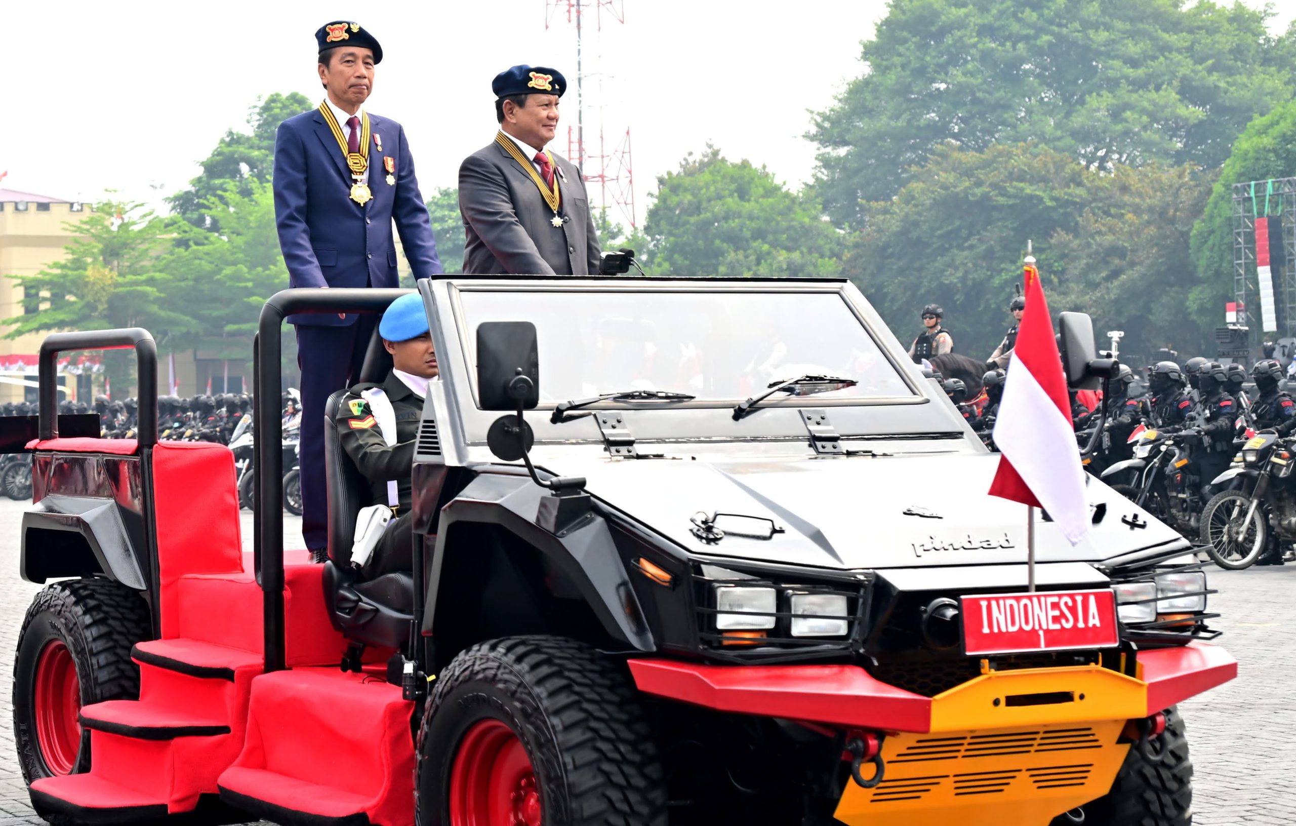 Presiden Jokowi tiba di gerbang Mako Brimob Kelapa Dua sekitar pukul 08.30 WIB dan disambut langsung oleh Menteri Pertahanan yang juga Presiden Terpilih Prabowo Subianto, Kepala Kepolisian Negara Republik Indonesia Jenderal Polisi Listyo Sigit Prabowo, serta Panglima TNI Jenderal Agus Subiyanto. Setelah penyambutan, Presiden Jokowi menaiki kendaraan taktis Rantis Maung menuju Lapangan Apel, diiringi drumband Taruna Akademi Kepolisian (Akpol) hingga tiba di mimbar kehormatan.