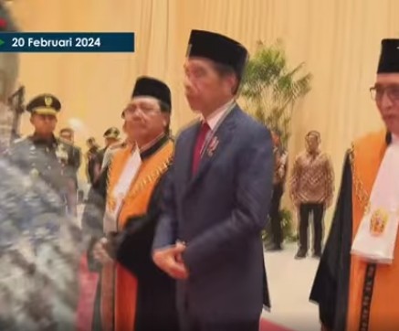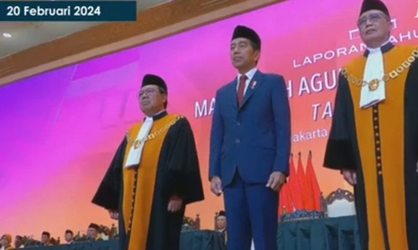 Jakarta| Acara Sidang Istimewa Laporan Tahunan Makamah Agung RI Tahun 2023 Selasa, 20 Februari 2024 dihadiri oleh Presiden Republik Indonesia Joko Widodo. Tampak hadir perwakilan dari para pimpinan lembaga tinggi negara, para Ketua Mahkamah Agung negara-negara sahabat, dewan peradilan Agung negara Kuwait, ketua Mahkamah Agung negara Malaysia, ketua Mahkamah Agung negara Singapura, Ketua Mahkamah Agung negara Qatar, wakil ketua Mahkamah Agung federasi Rusia, delegasi dari