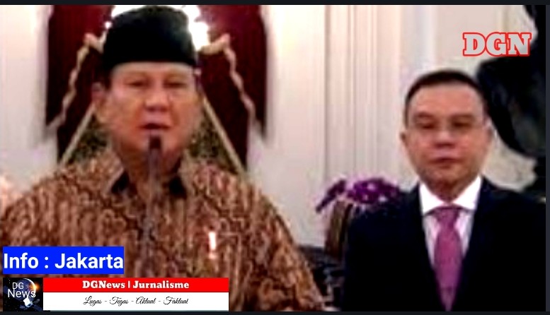 Presiden Prabowo didampingi Wakil Presiden Gibran Rakabuming Raka dan Ketua Harian Partai Gerindra Sufmi Dasco Ahmad, memberikan pengumuman kepada awak media dengan susunan Kabinet Merah Putih, sebagai berikut: