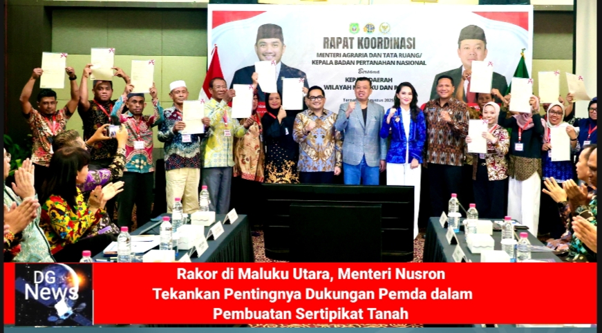 “Kolaborasi dan koordinasi mutlak sifatnya, tidak boleh tidak. Kami tidak bisa menerbitkan sertipikat tanah kalau tidak ada dukungan dokumen dari Pemda, dukungan dari kepala desa. Karena, setiap akan menerbitkan sertipikat, harus tahu tentang riwayat tanah, dan yang tahu riwayat tanah itu adalah desa,” terang Menteri Nusron dalam Rapat Koordinasi dengan Pemda Maluku Utara, di Kota Ternate, Sabtu (23/08/2025).