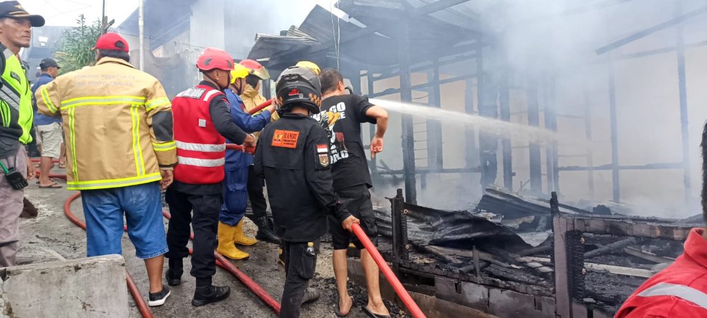 Api membakar sedikitnya 4 bangunan rumah yang terbuat dari material kayu.