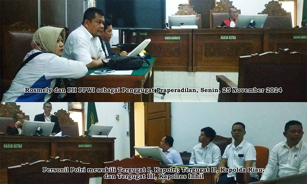 JAKARTA – Persatuan Pewarta Warga Indonesia (PPWI) akhirnya mencabut gugatan Pra-peradilan (Prapid) terhadap Kepala Kepolisian Republik Indonesia (Kapolri) dalam kasus dugaan kesalahan prosedur penetapan tersangka dan penahanan atas diri wartawati Indragiri Hilir, Rosmely, oleh Kapolres Inhil beberapa waktu lalu. Pencabutan gugatan Prapid tersebut dilakukan dalam sidang hari pertama yang digelar di Pengadilan Negeri Jakarta Selatan, Senin, 25 November 2024.