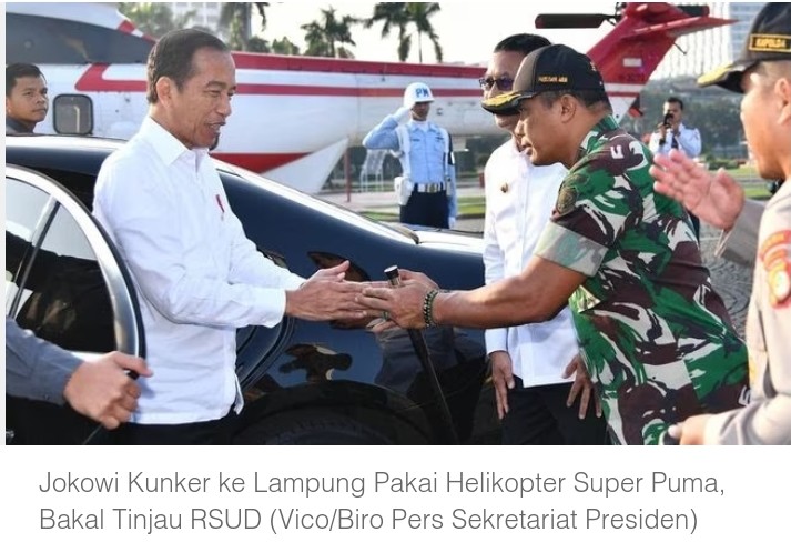 Presiden Joko Widodo melakukan kunjungan kerja ke Provinsi Lampung pada Kamis, 11 Juli 2024. Dengan menggunakan helikopter Super Puma TNI AU, Presiden Jokowi dan rombongan lepas landas dari Lapangan Monumen Nasional, Jakarta sekitar pukul 07.30 WIB.