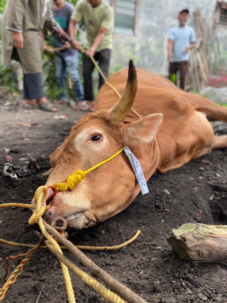 Lampung Tengah – DGNews | Hari Raya Idul Adha 1445H Tahun 2024 Rumah Sakit Mitra Mulia Husada (MMH) Bandar Jaya Kecamatan Terbanggi Besar, Lampung Tengah berikan satu ekor sapi hewan qurban untuk dibagikan kepada masyarakat yang berhak disekitar Pondok Pesantren (Ponpes) Bani Musa Bandarjaya Barat.
