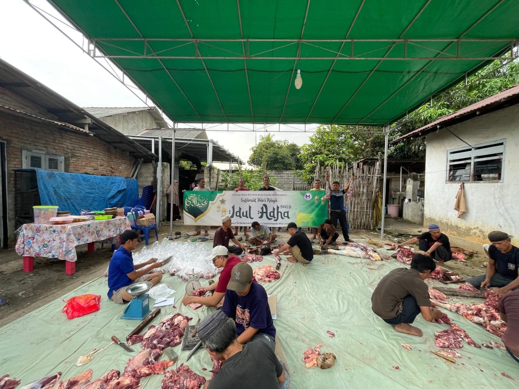 Hari raya Idul Adha 1445 H yang jatuh pada Senin 17 juni 2024 RS Mitra Mulia Husada menyembelih hewan qurban satu ekor sapi dengan berat 400 Kilogram di pemotongan hewan qurban dilaksanakan di RT 4 Lingkungan 1 Bandarjaya Barat.