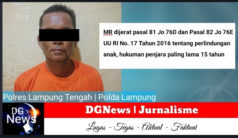 Jajaran Polsek Rumbia, Polres Lampung Tengah, Polda Lampung menangkap MR, setelah korban dirudapaksa untuk keempat kalinya di Kecamatan Bumi Nabung, Lampung Tengah, Jumat (22/4/24).