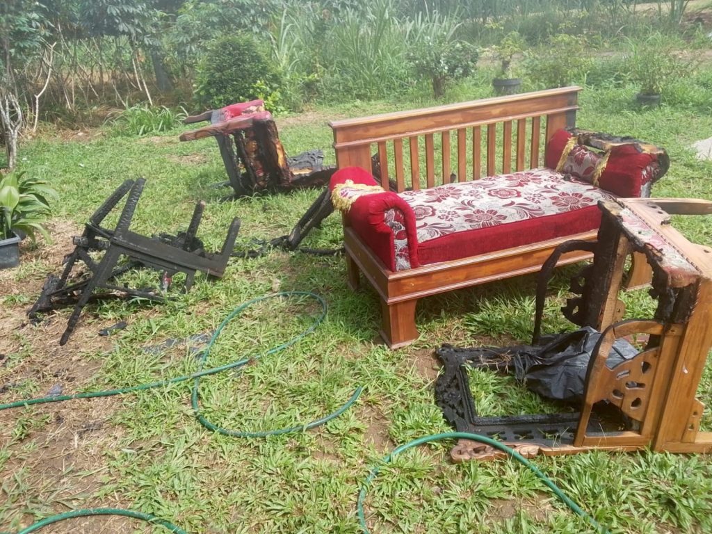 ” Mendengar suara ledakan dari luar saya langsung loncat dan melihat kedepan api sudah besar di jendela”, Ucapnya.