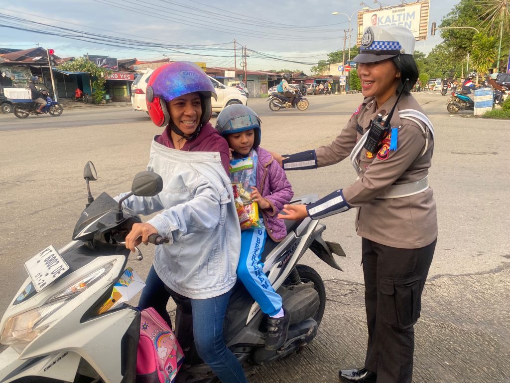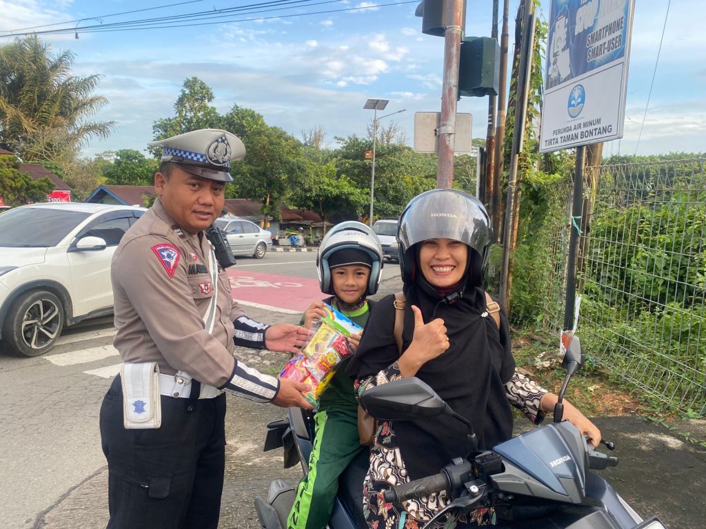BONTANG | Pada hari Jumat, tanggal 19 Juli 2024, Satuan Lalu Lintas Polres Bontang melaksanakan kegiatan pemberian reward kepada pengendara yang mentaati peraturan berlalu lintas. Kegiatan ini dilakukan dengan membagikan 100 souvenir atau bingkisan kepada pengendara yang patuh terhadap aturan berlalu lintas, khususnya kepada pengendara yang membonceng anak kecil.