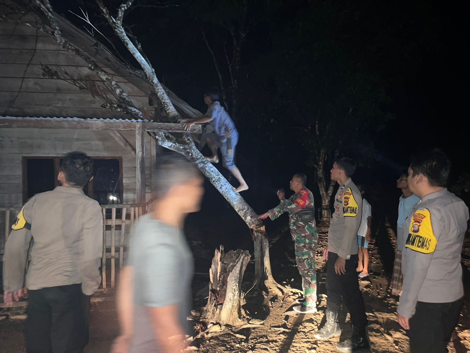 Tulang Bawang Barat—-Sektor Tulang Bawang Tengah, Polres Polres Tulang Bawang Barat bergerak cepat membantu warga yang terdampak angin puting beliung di kelurahan Panaragan jaya dan tiyuh Panaragan jaya utama Kecamatan Tulang bawang tengah Kabupaten Tulang Bawang Barat. Angin puting beliung ini terjadi pada, Jum’at (10/11/2023) malam sekira pukul 19.00 Wib yang mengakibatkan sejumlah rumah warga mengalami kerusakan.