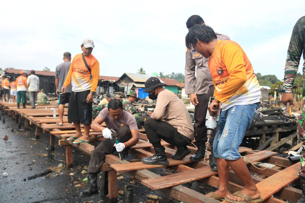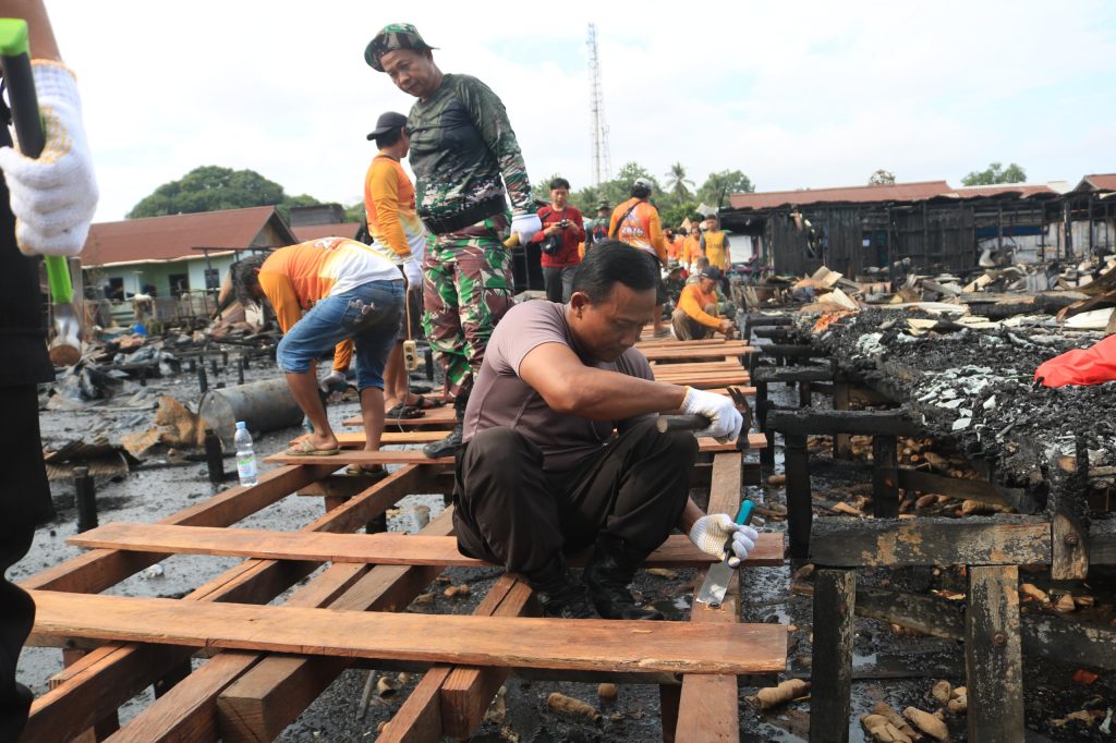 “Kami bersama TNI dan masyarakat bahu-membahu dalam proses pembangunan ini. Selain memperbaiki infrastruktur yang rusak, kegiatan ini juga merupakan bentuk kepedulian dan solidaritas kami terhadap warga yang menjadi korban kebakaran,” ujar Iptu Alimuddin.