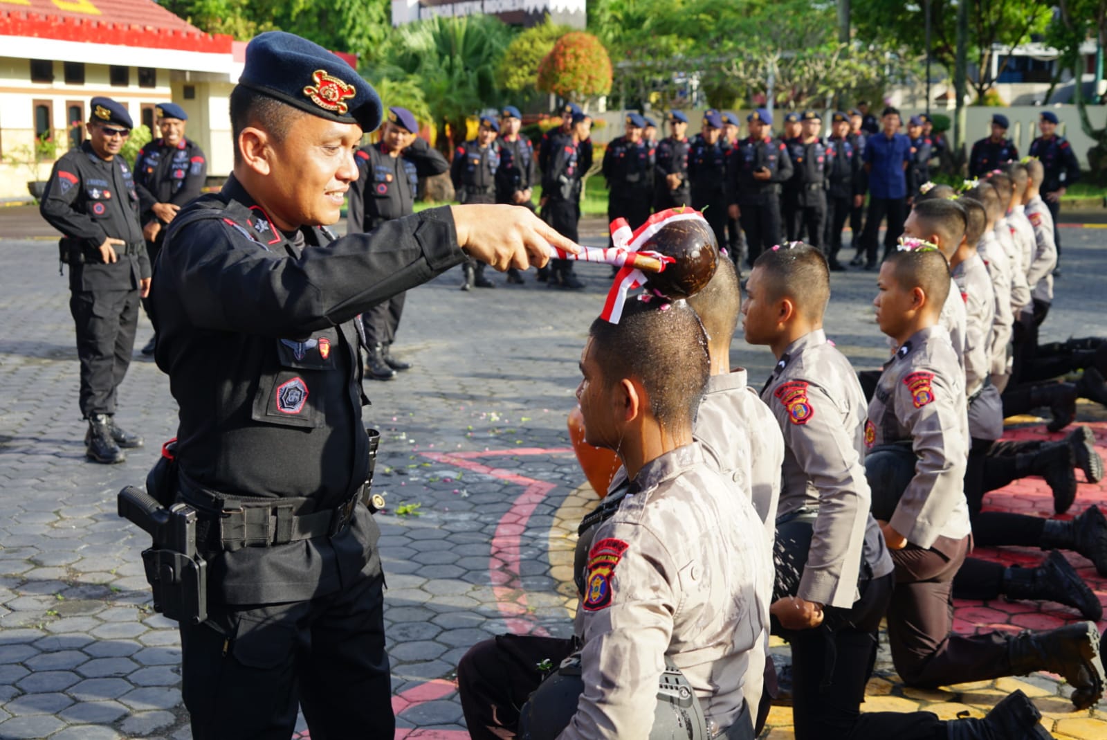 “Selamat datang dan selamat bergabung. Kehadiran kalian adalah kebanggaan bagi kami, dan kalian sekarang menjadi bagian dari keluarga besar Satbrimob Polda Kaltim. Tradisi ini adalah wujud cinta kami kepada keluarga baru,” ujar Andy Rifai.