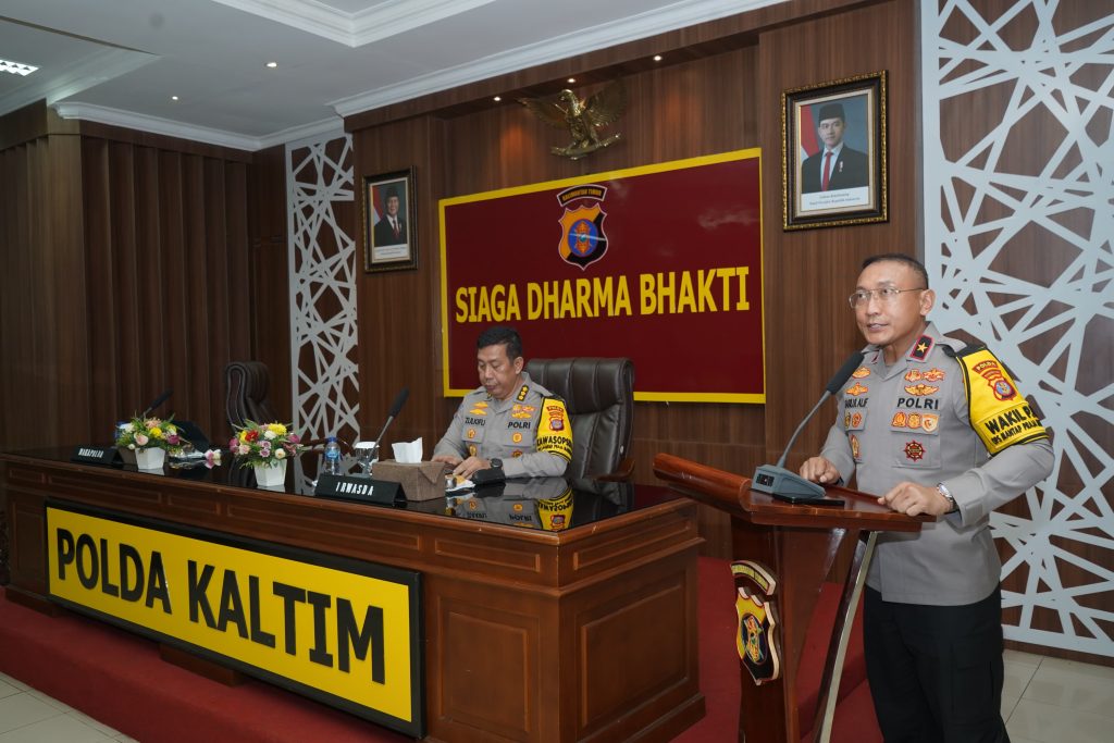 Taklimat Akhir Audit Wasrik ini Wakapolda Kaltim didampingi Irwasda Polda Kaltim Kombes Pol Zulkifli, S.St.Mk., S.H., M.M para Pejabat Utama Polda Kaltim, serta para Kapolres jajaran secara daring.